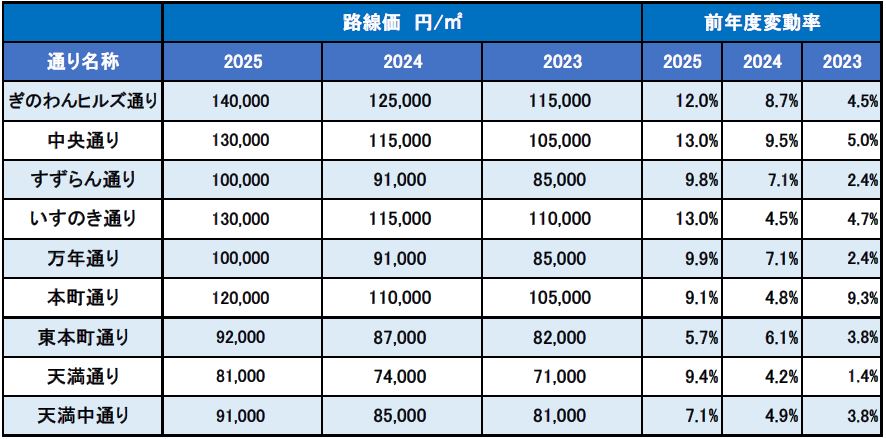普天間路線価伸び率2025